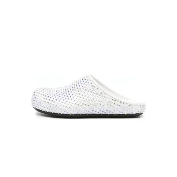 Marni Calfskin Fussbett Sabot White Leather with Rhinestones SBMS004601P639400W01